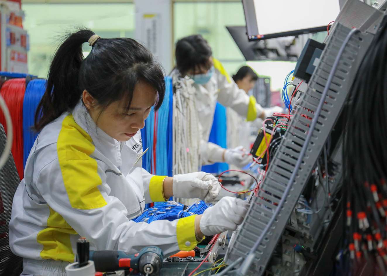 工作人員進行電氣控制柜組裝